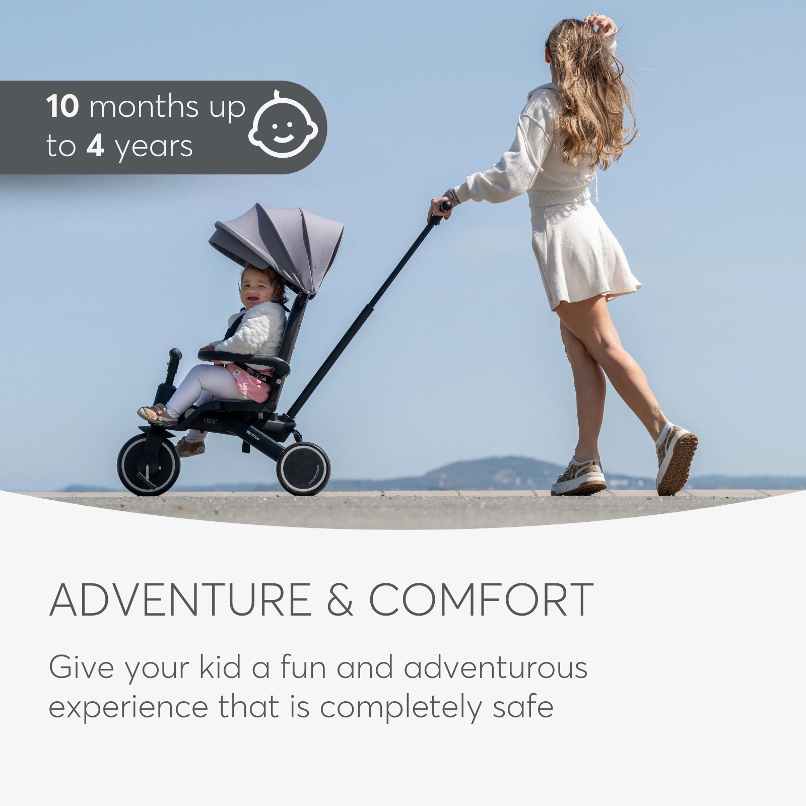 TRIX 2 daugiafunkcis triratis – puikus linksmybių, saugumo ir patogumo derinys, paverčiantis kasdienius pasivaikščiojimus tikrais nuotykiais mažiesiems tyrinėtojams.