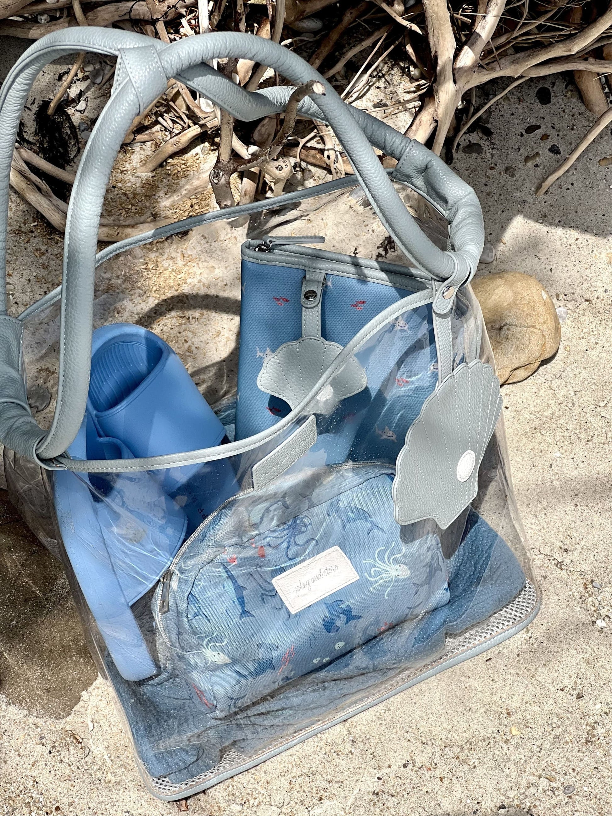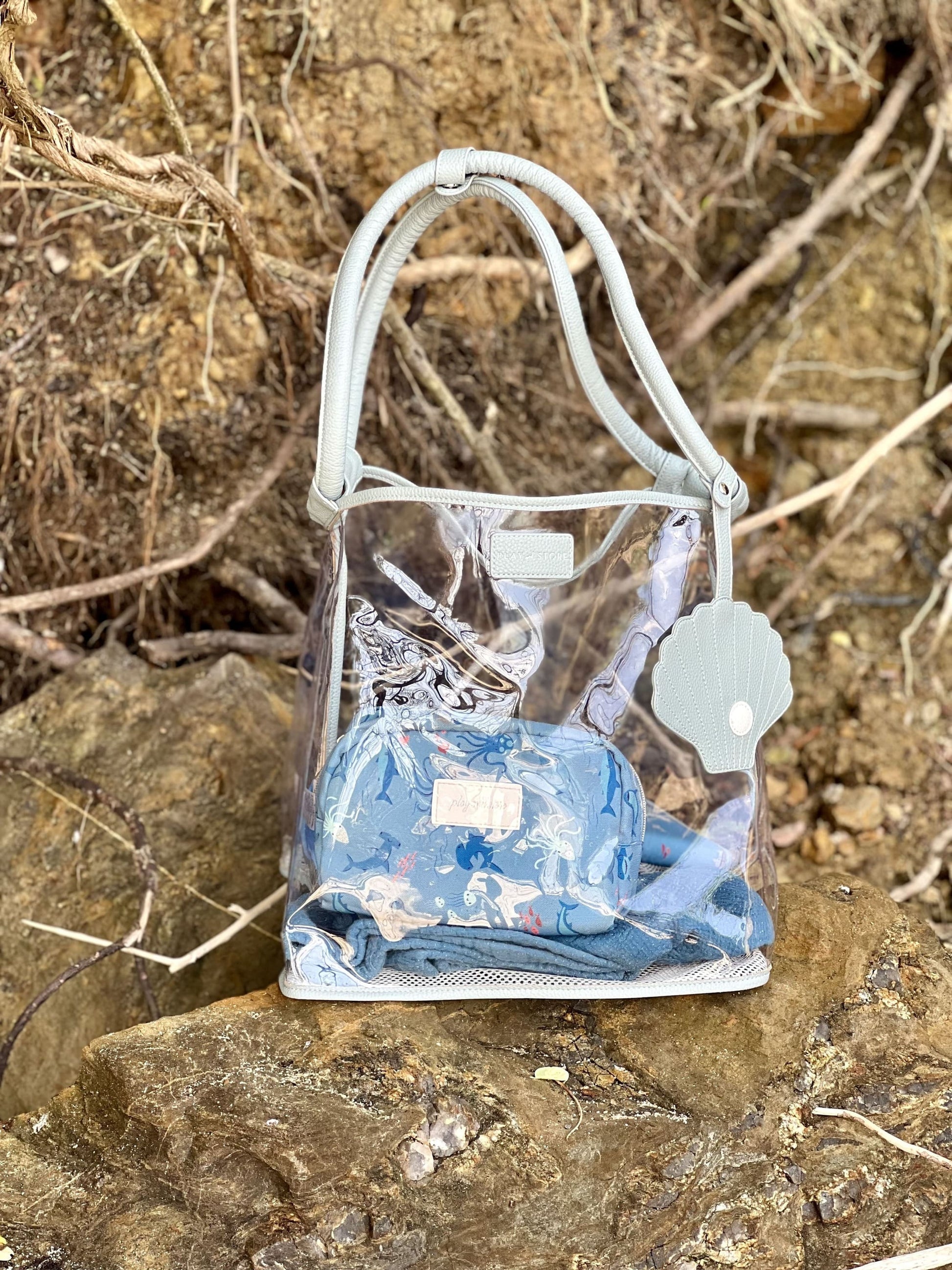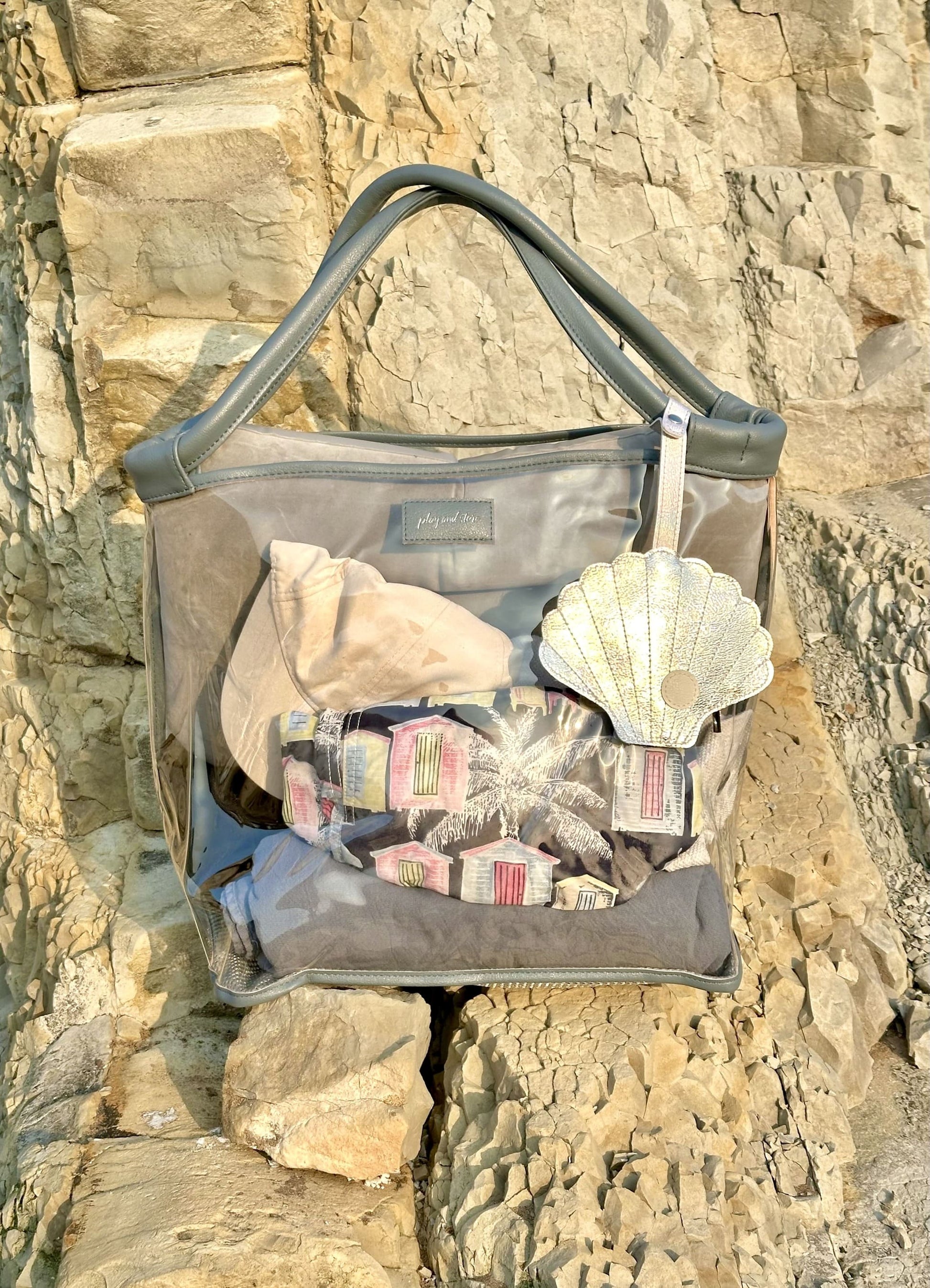 Mūsų inovatyvi paplūdimio tašė – skaidri, kvadratinės formos, su itin talpia vidaus erdve, todėl patogiai sutalpinsite visos šeimos rankšluosčius, pietus, žaislus ir kitus būtinus daiktus