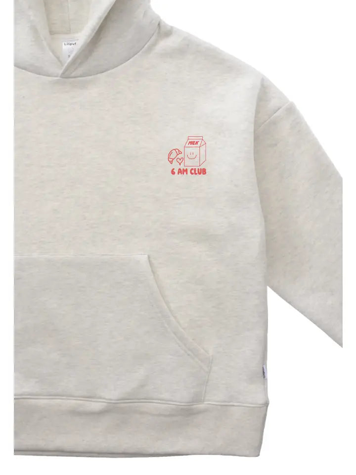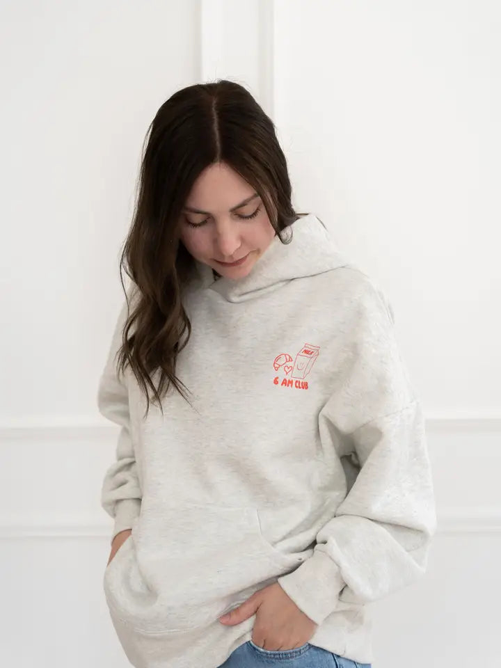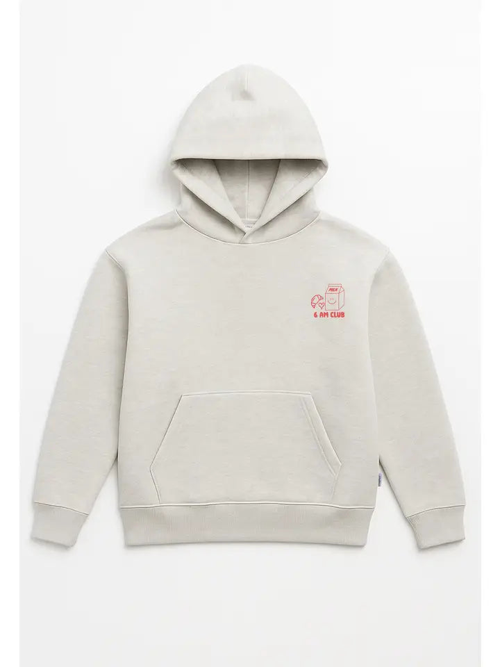 Šviesiai pilkas „Coffee before Chaos“ džemperis su gobtuvu – tiems, kurie pabunda anksti, nors to visai neplanavo. Minkštas, patogus ir tinkantis kasdienai. Priekyje – patogi kišenė ir žaismingas „6am Club“ užrašas
