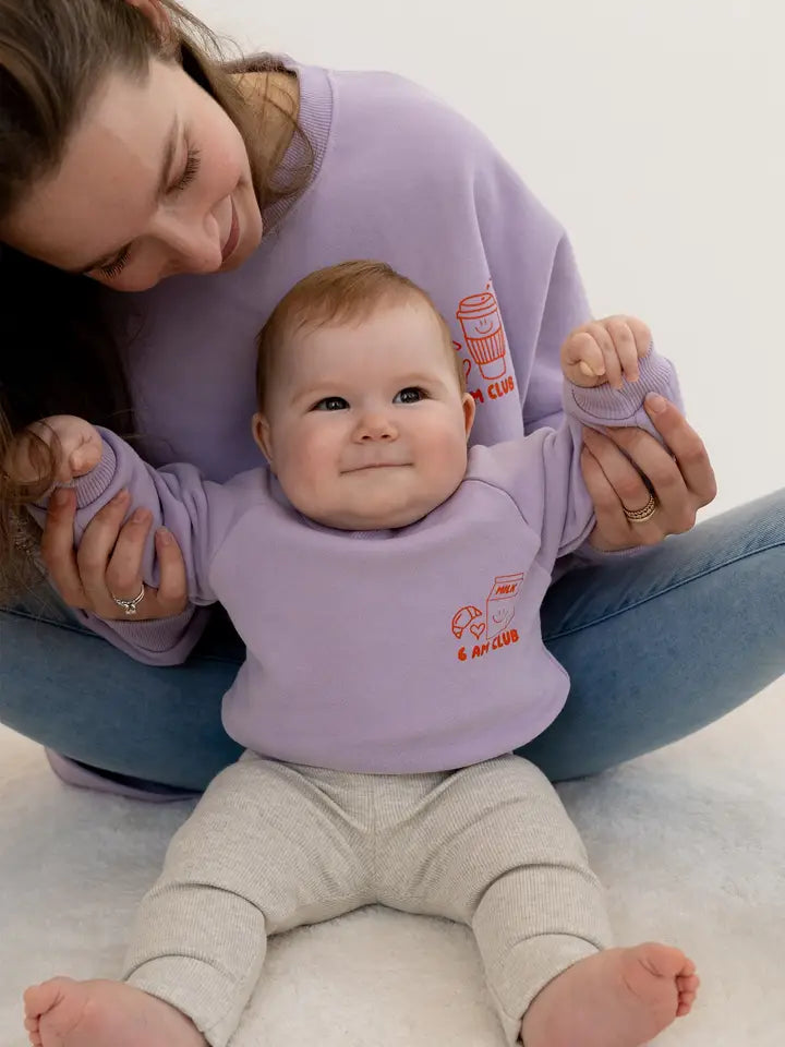 Priekyje – miela spauda su pieno pakeliu, kruasanu ir širdelėmis, o po ja ryškus oranžinis užrašas „6AM Club“. Minkštas, jaukus ir su raglan tipo rankovėmis, kurios suteikia daugiau judėjimo laisvės. Puikiai tinka mažiesiems ankstyviems pabudėliams, kurie pasaulį pradeda tyrinėti dar prieš pirmą kavą (tėvams)