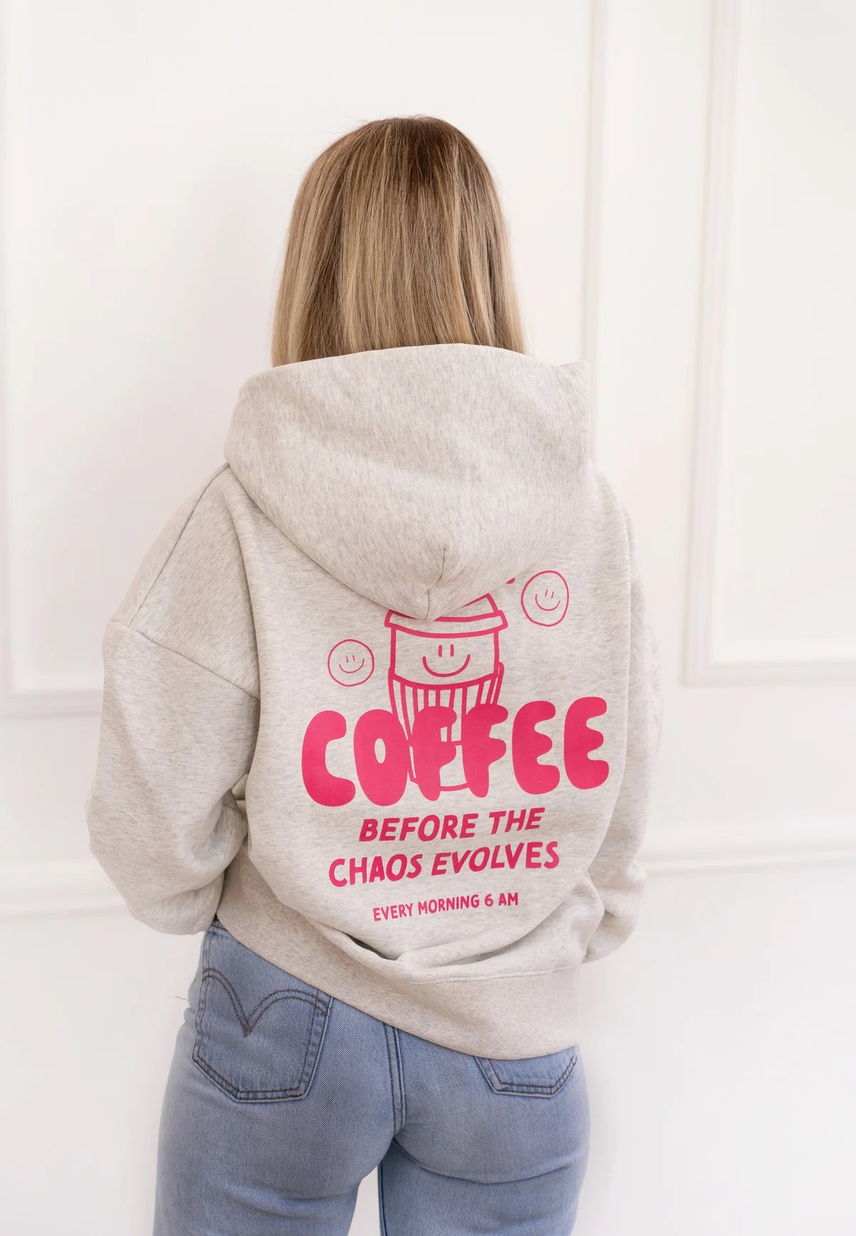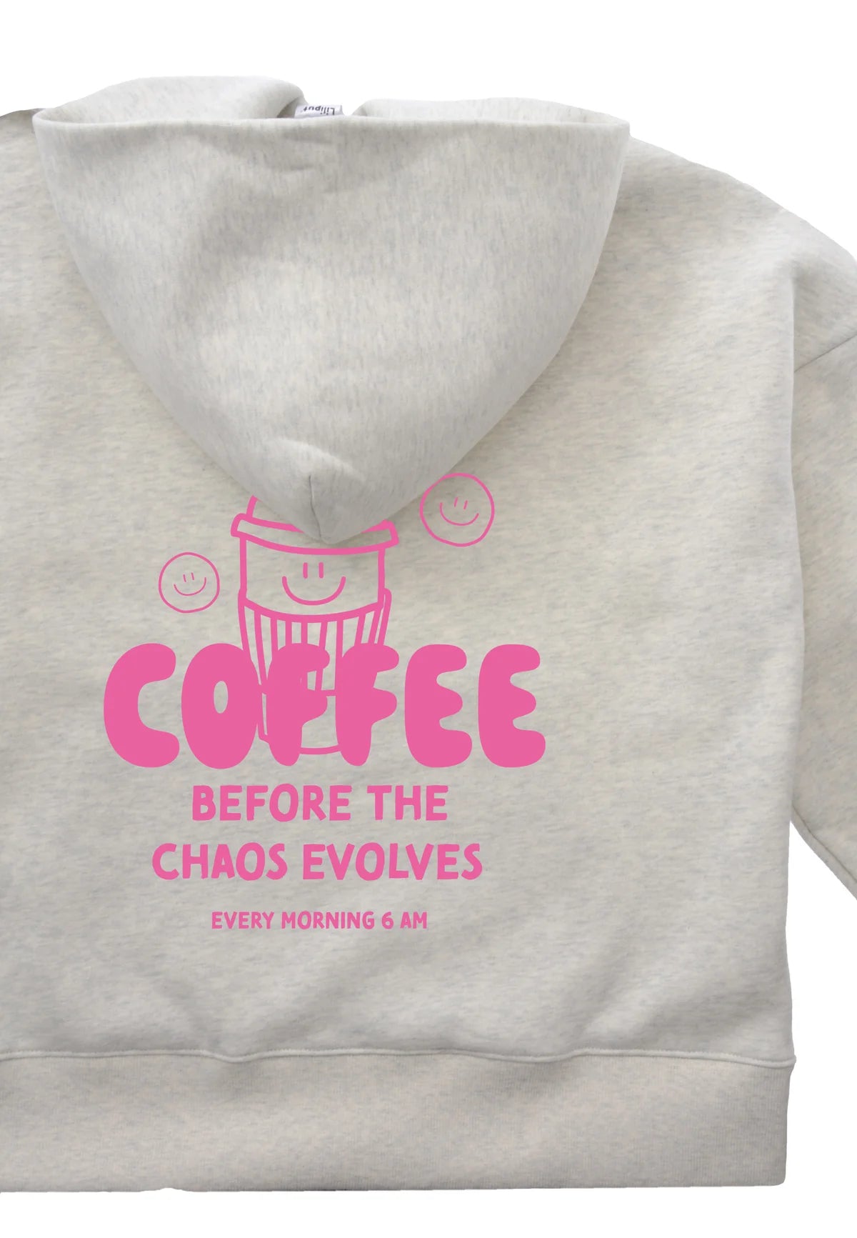 Jaukus, kasdieniškas ir sukurtas su meile – pilkos spalvos „Coffee“ džemperis pasižymi laisvu oversize dydžiu. Priekyje jį puošia subtilus rožinis puodelis, o nugaroje – išraiškinga žinutė „Coffee before the chaos evolves“