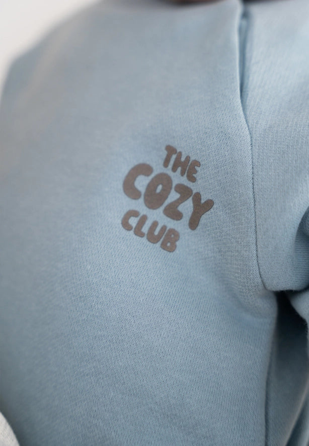 Šviesiai pilkas „Cozy Club“ džemperis sukurtas jaukioms akimirkoms. Minkštas, patogus ir su meile apgalvotas modelis, kurio priekyje subtiliai įkomponuotas tamsiai rudos spalvos užrašas „the cozy club“, o nugaroje – žaisminga žinutė: „Cozy Club, snuggles, and all things cozy“