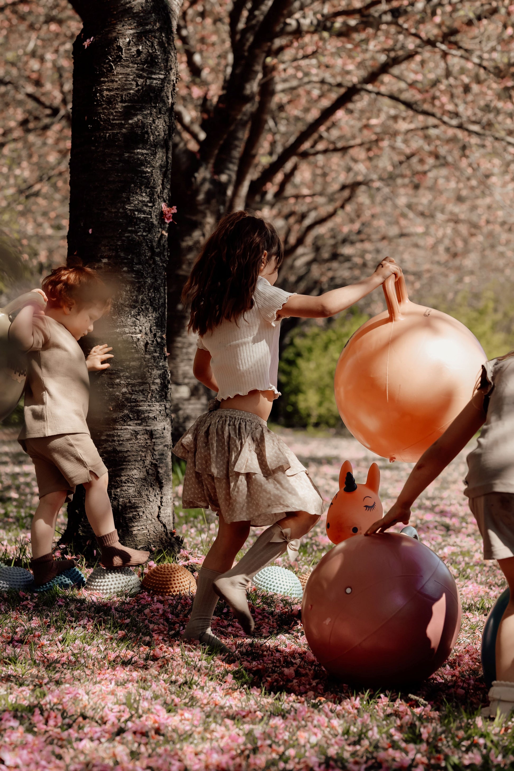 „Find That Hippo“ šokinėjimo kamuoliai pasižymi šiltais, skandinaviško stiliaus įkvėptais spalvų deriniais, kurie puikiai dera namų aplinkoje