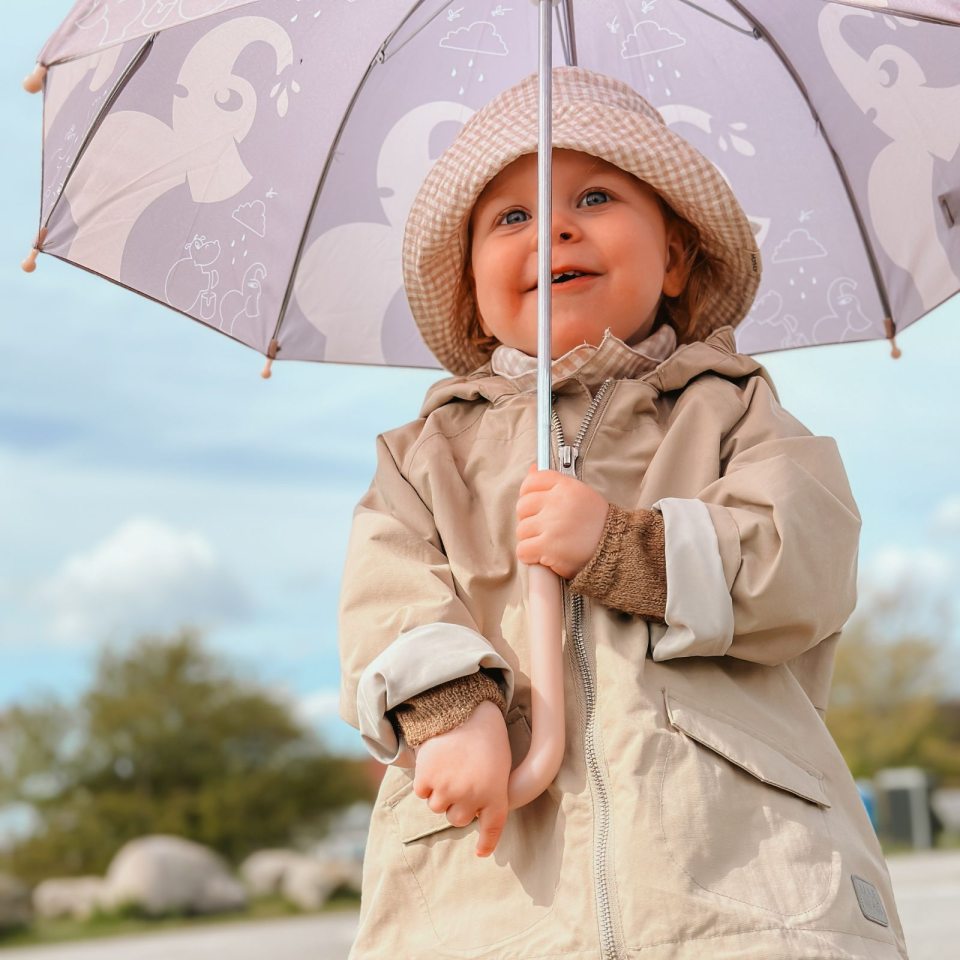 Ar yra kas jaukiau nei klausytis, kaip lietus barbena į skėtį? Daugelis vaikų, kurie mėgsta išeiti į lietų, tikrai pasakytų, kad ne. Šis vaikiškas skėtis papuoštas linksmo drambliuko, besitaškančio vandenyje, piešiniais