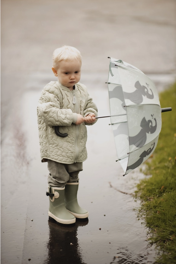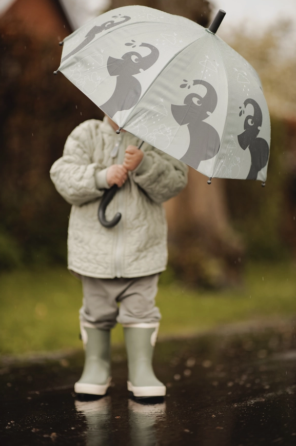 Ar yra kas jaukiau nei klausytis, kaip lietus barbena į skėtį? Daugelis vaikų, kurie mėgsta išeiti į lietų, tikrai pasakytų, kad ne. Šis vaikiškas skėtis papuoštas linksmo drambliuko, besitaškančio vandenyje, piešiniais