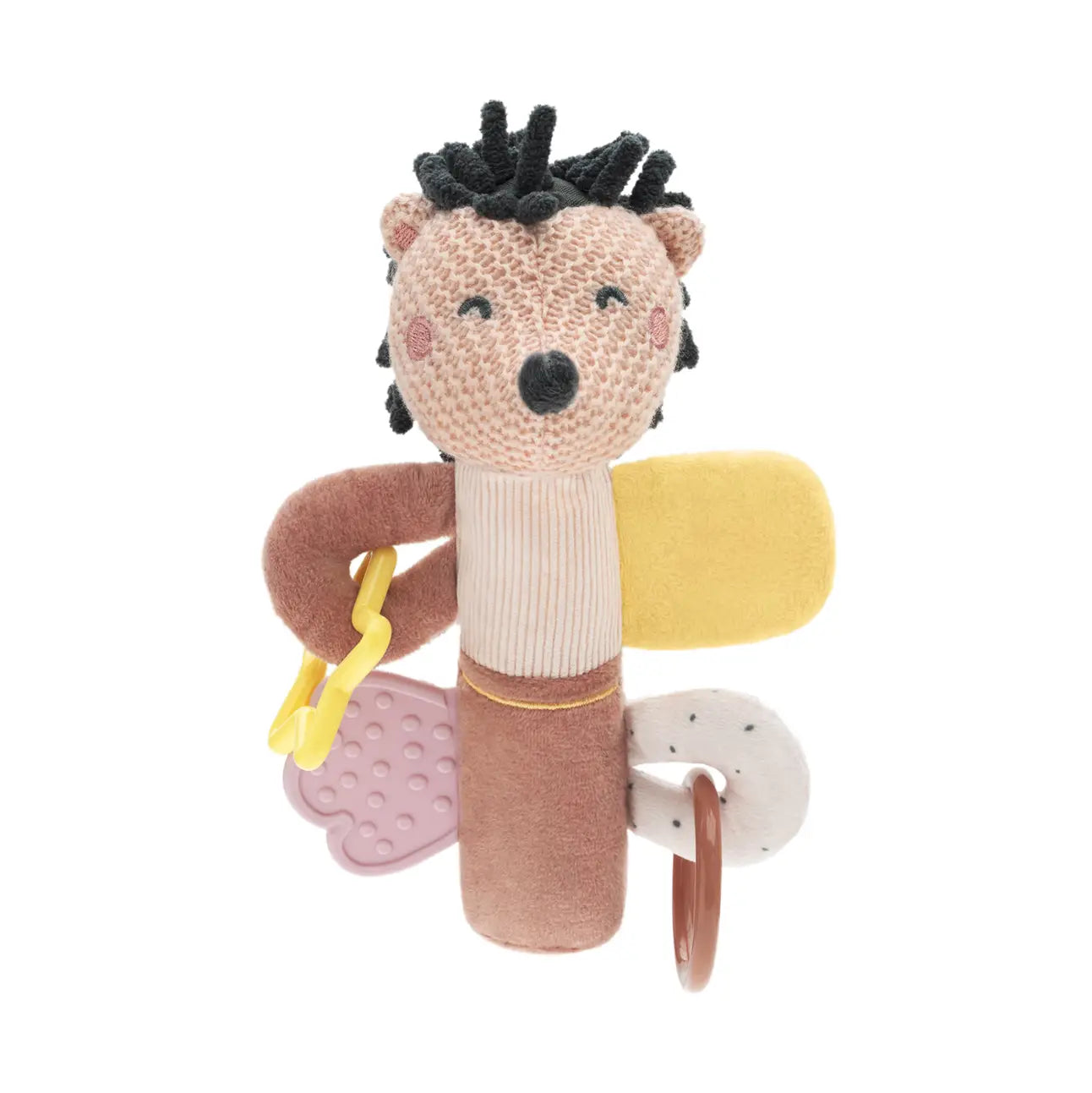 Minkštas lavinamasis žaislas „Hedge-Hugs“ skirtas kūdikiams nuo gimimo iki 3 metų. Žaisle integruotas cypsukas, spalvingas kramtukas, plastikiniai žiedeliai ir šiugždantys elementai, kurie skatina vaiko jutimų vystymąsi bei smulkiąją motoriką.