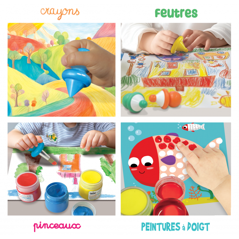 Ši spalvinga dėžutė sukurta specialiai mažyliams nuo 12 mėn, kad pirmosios piešimo ir tapybos patirtys būtų smagios, saugios ir įkvepiančios
