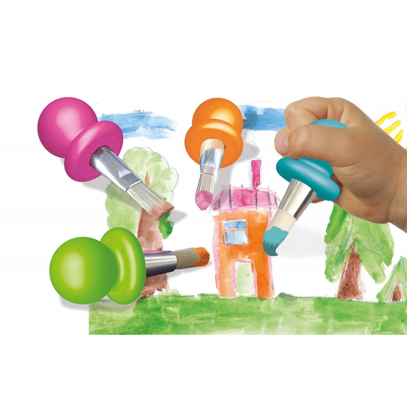 Rinkinyje yra 4 teptukai su ergonomiškomis rankenėlėmis, leidžiančiomis jauniems menininkams nevaržomai reikšti savo fantaziją