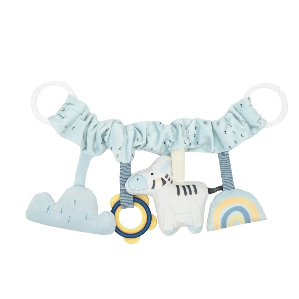 Pakabinamas žaislas vežimėliui „Stripy Friends“ skirtas kūdikiams nuo 0 iki 3 metų. Žaislas turi 3D gyvūnėlių figūrėles, spalvingus plastikinus žiedelius ir veidrodėlį, kuris skatina kūdikį tyrinėti savo atspindį. Kiekvienoje pusėje yra po 2 plastikinį žiedą, todėl žaislą lengva pritvirtinti prie vežimėlio ar lopšio.