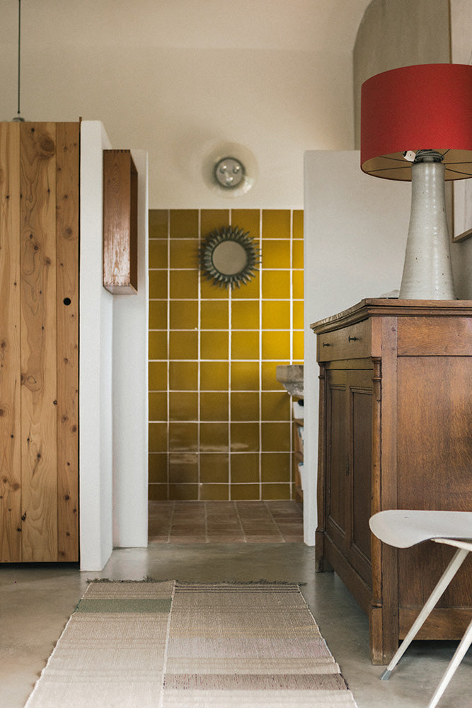 Įkvėptas Lorenos kelionės į Meksiką, šis rankomis austas kilimas atspindi tradicinio audimo dvasią per sodrų spalvų ir tekstūrų derinį. Lino sluoksnis suteikia paviršiui švelnumo, o iš perdirbtų siūlų pagaminti kutai prideda gylio ir charakterio. Kilimas užbaigtas firminiu „L“ ženklu ir matoma siūlės linija natūralių atspalvių. Rekomenduojamas profesionalus valymas.