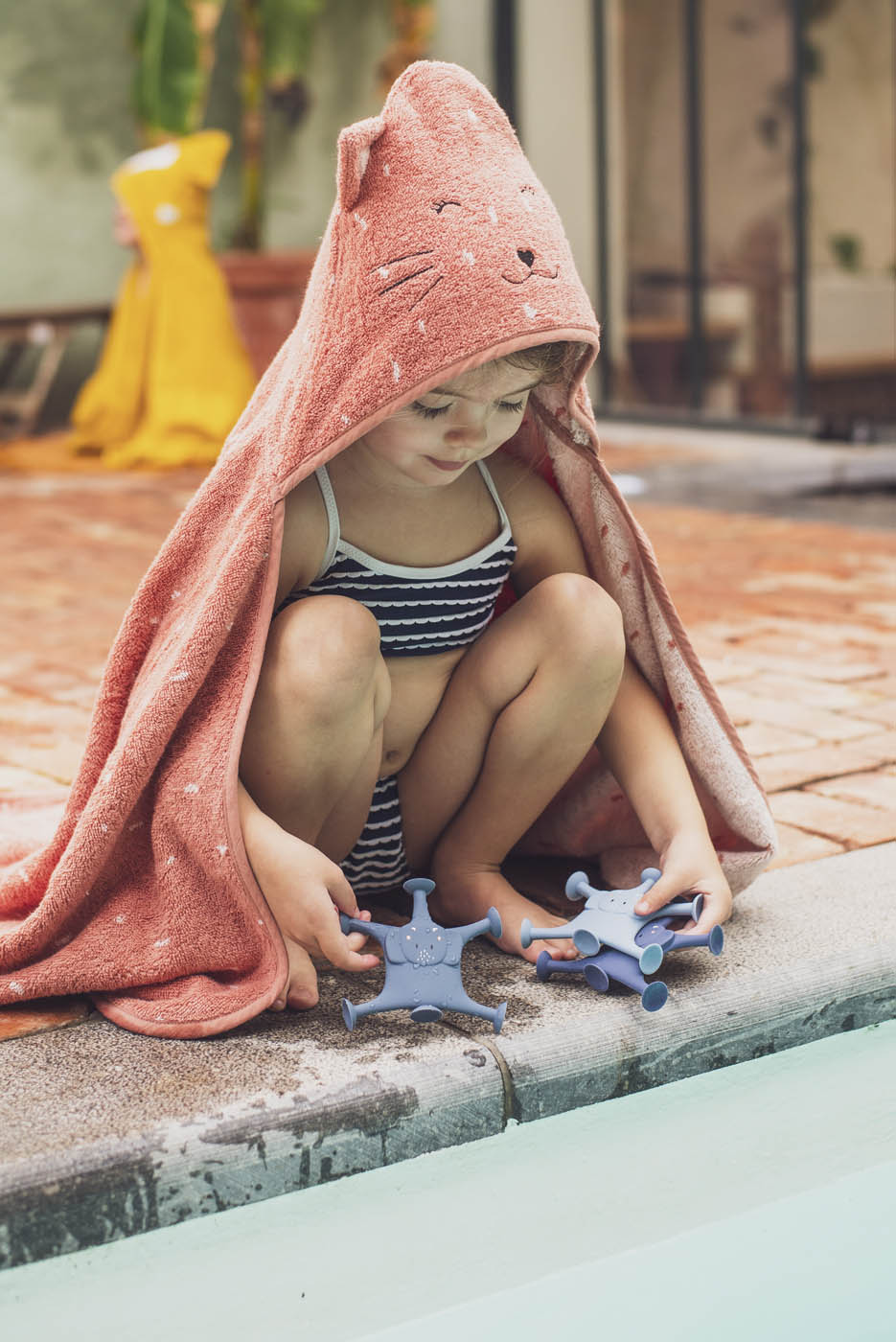 Visi būtini kūdikių produktai šioje naujoje kolekcijoje pagaminti iš nuostabiai minkšto frotinio audinio. Gyvūnėlių linksmybės tęsiasi ir vonioje! Po gaivinančių maudynių ar malonaus dušo mūsų mėgstami gyvūnėliai pasiruošę švelniai apkabinti jūsų mažylį. Kadangi šie gaminiai glaudžiai liečiasi su kūdikių oda, jie pagaminti iš 100 % ekologiškos medvilnės.