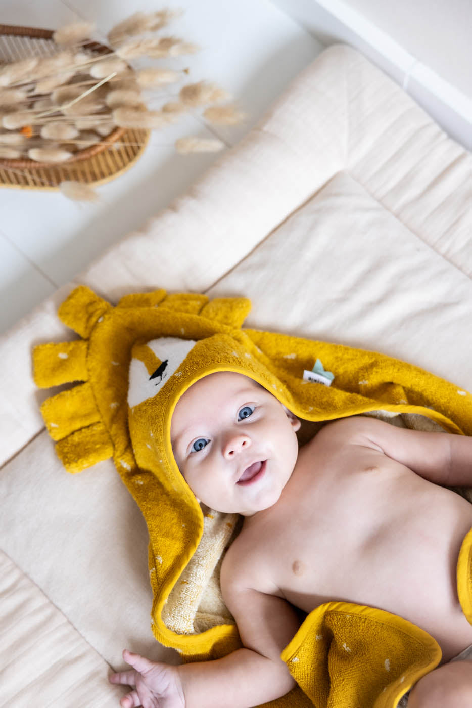 Visi būtini kūdikių produktai šioje naujoje kolekcijoje pagaminti iš nuostabiai minkšto frotinio audinio. Gyvūnėlių linksmybės tęsiasi ir vonioje! Po gaivinančių maudynių ar malonaus dušo mūsų mėgstami gyvūnėliai pasiruošę švelniai apkabinti jūsų mažylį. Kadangi šie gaminiai glaudžiai liečiasi su kūdikių oda, jie pagaminti iš 100 % ekologiškos medvilnės.