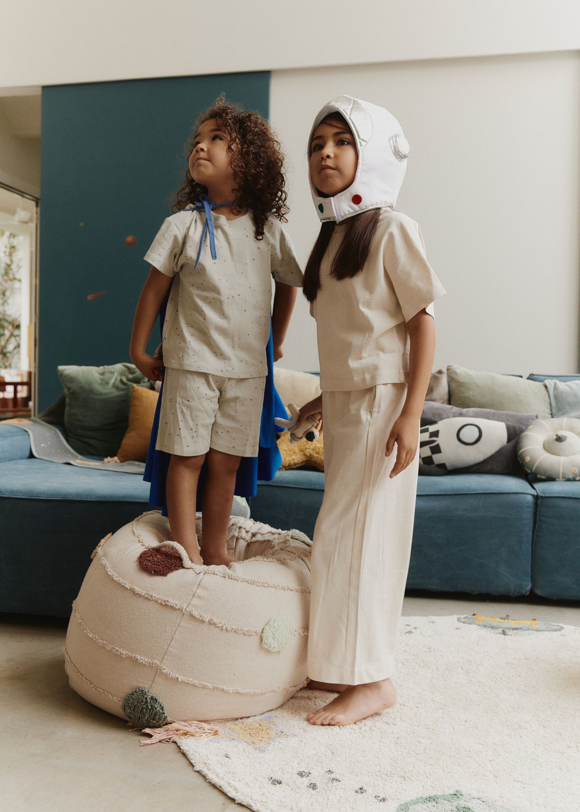 Atsipalaiduokite tarsi neegzistuotų gravitacija su Saulės sistemos pufu! Rankų darbo pufas pagamintas iš natūralios drobės, dekoruotas dygsniuotomis linijomis ir ryškiais woodrose, medaus, mėlyno šalavijo bei marshalla atspalvių apskritimais, primenančiais planetas ir jų orbitas. Užpildytas polistireno granulėmis, leidžiančiomis lengvai formuoti patogią sėdėjimo padėtį, o užtrauktuku užsegamas užvalkalas užtikrina paprastą priežiūrą. Patogi rankena leidžia lengvai perkelti pufą iš vienos vietos į kitą. Paverskite bet kurią erdvę jaukia ir stilinga su Saulės sistemos pufu.