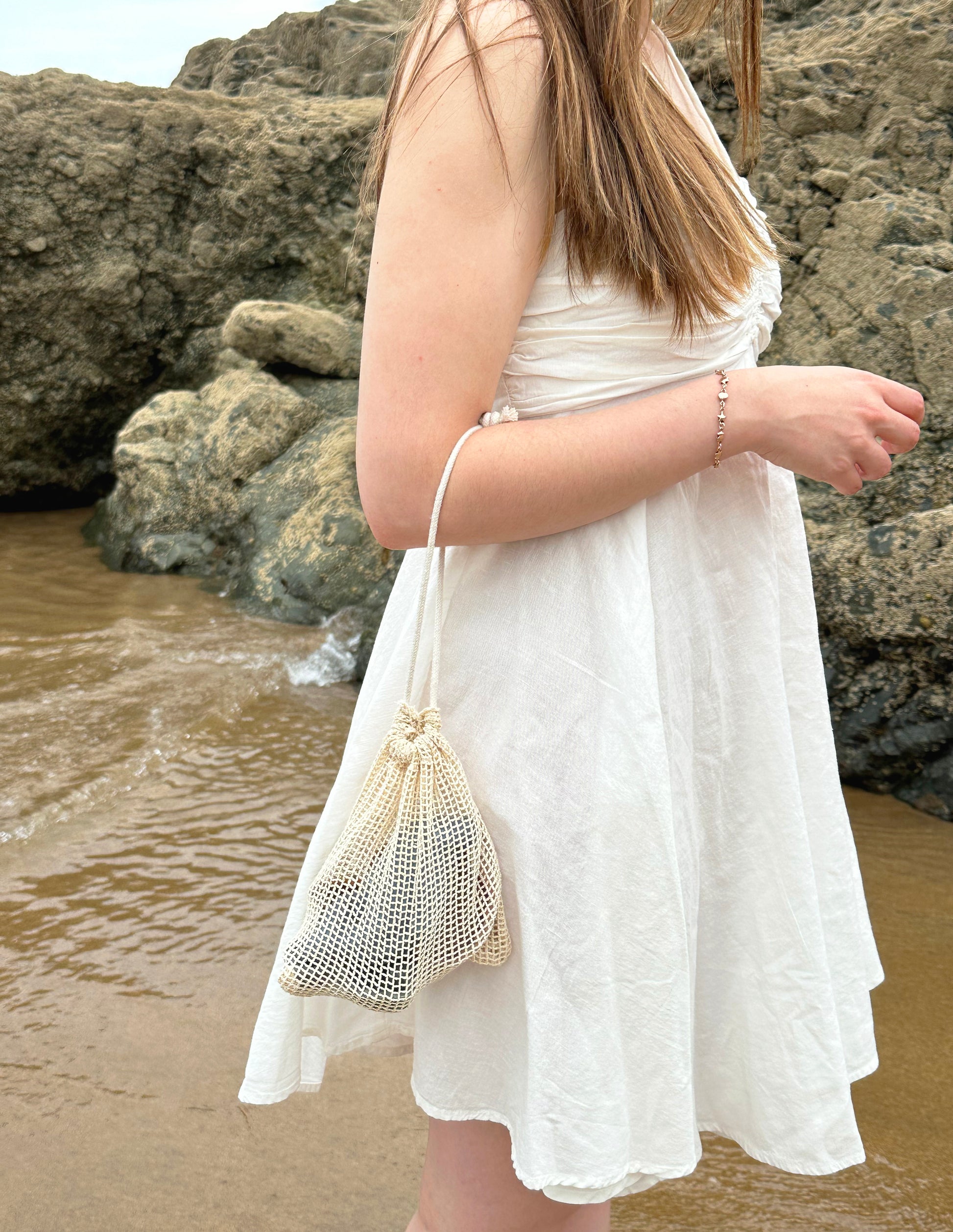 Medvilninis tinklinis maišelis patogiam laikymui ir nešimuisi