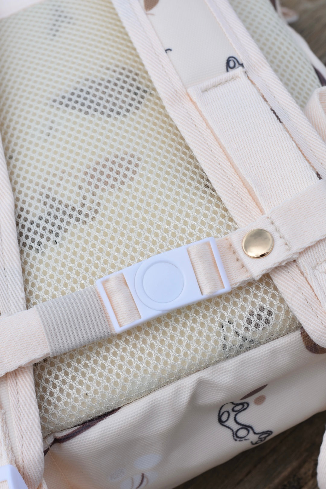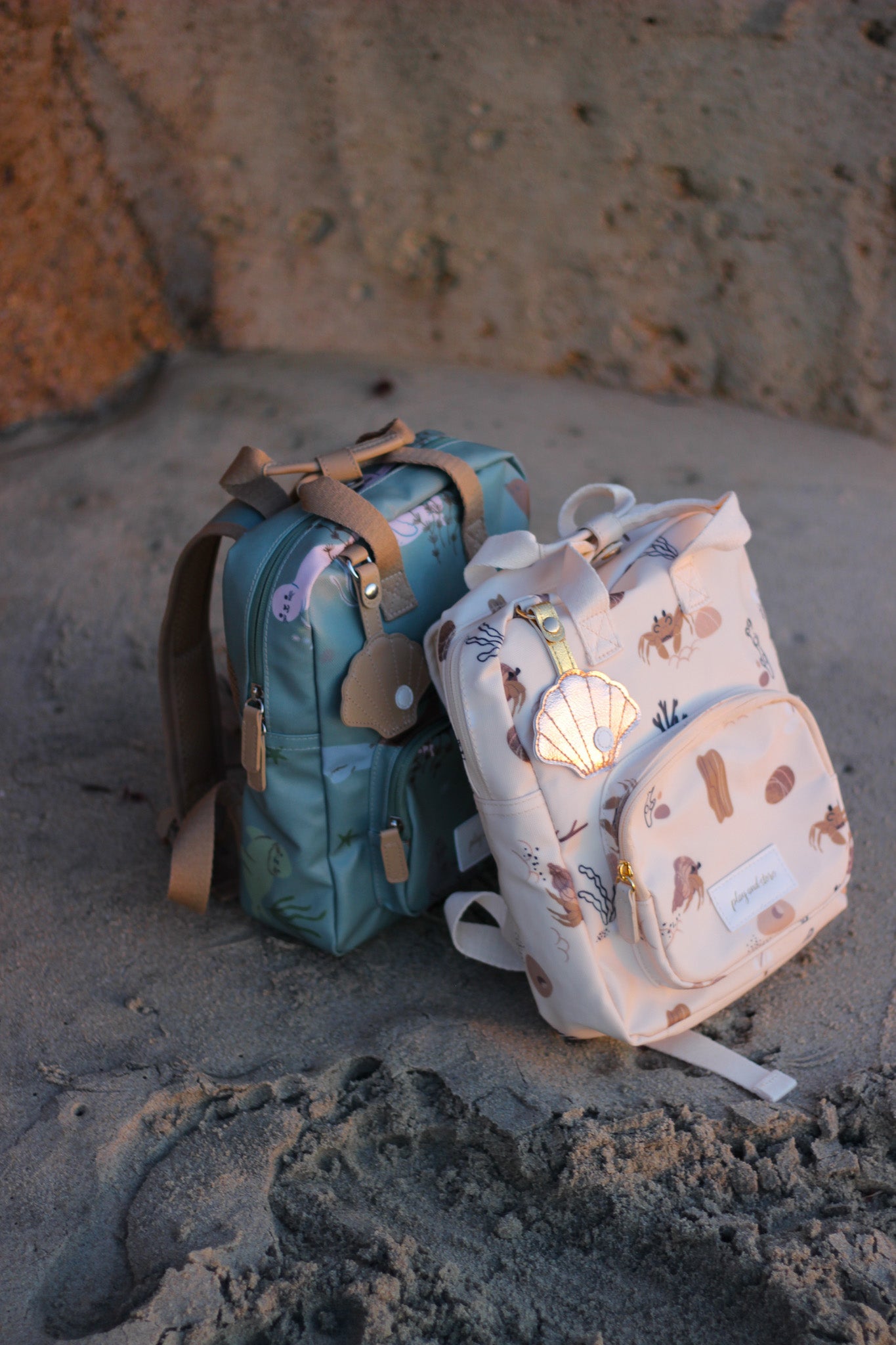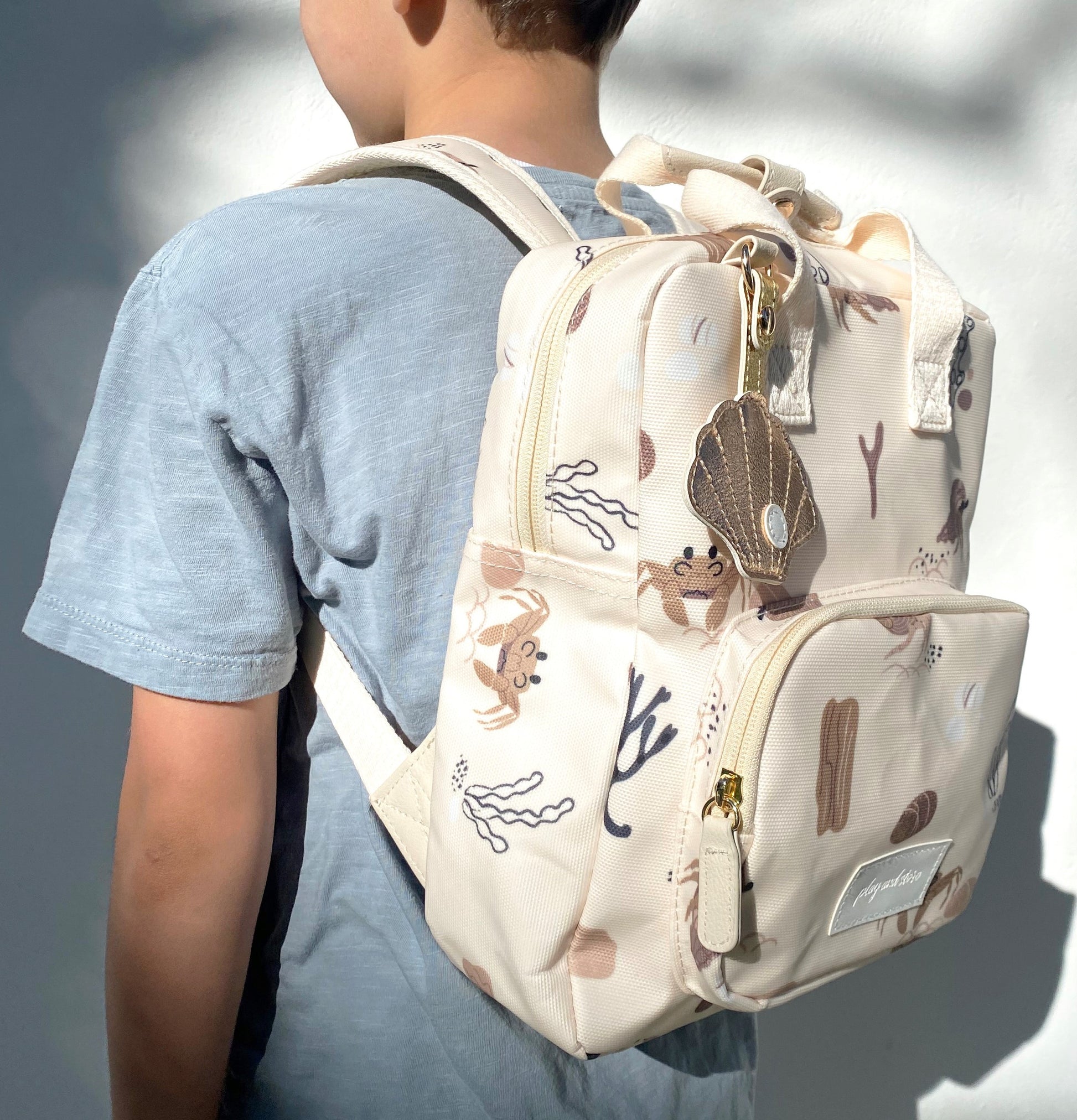 Papildomam saugumui kuprinėje įsiūta kriauklės formos vardinė etiketė, kurioje galima užrašyti vaiko ar tėvų kontaktinius duomenis. Kuprinė taip pat turi priekinę ir vidinę kišenes, kurios padės tvarkingai susidėti smulkmenas