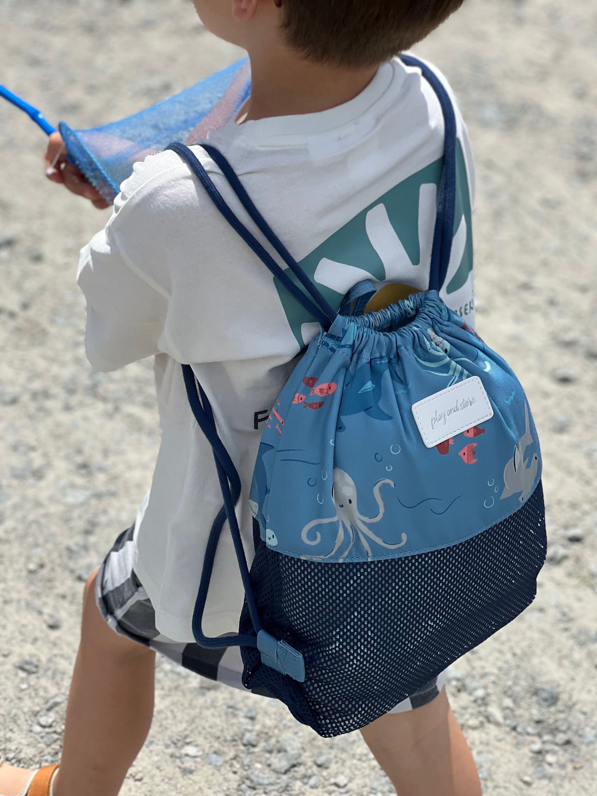 Ši didelio dydžio tašė patogi laikyti visus žaislus, rankšluosčius ir kitus būtinus daiktus