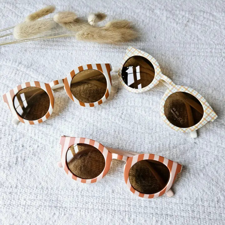 Vaikiški saulės akiniai su UV400 apsauga, dryžuoti – švelni rožinės / karamelės spalvos